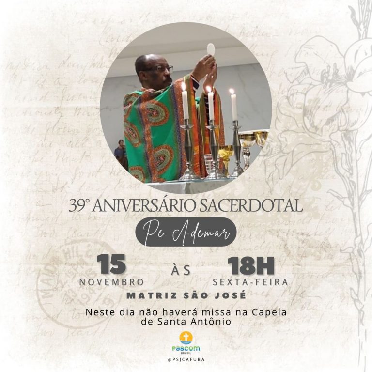 Nossa paróquia está em festa! Com grande alegria, convidamos você e sua família para celebrarmos juntos o aniversário sacerdotal do nosso querido padre Ademar. Vamos nos reunir para agradecer a Deus por sua vocação e dedicação ao serviço de nossa comunidade. Venha participar deste momento especial de fé e gratidão. Esperamos por você!