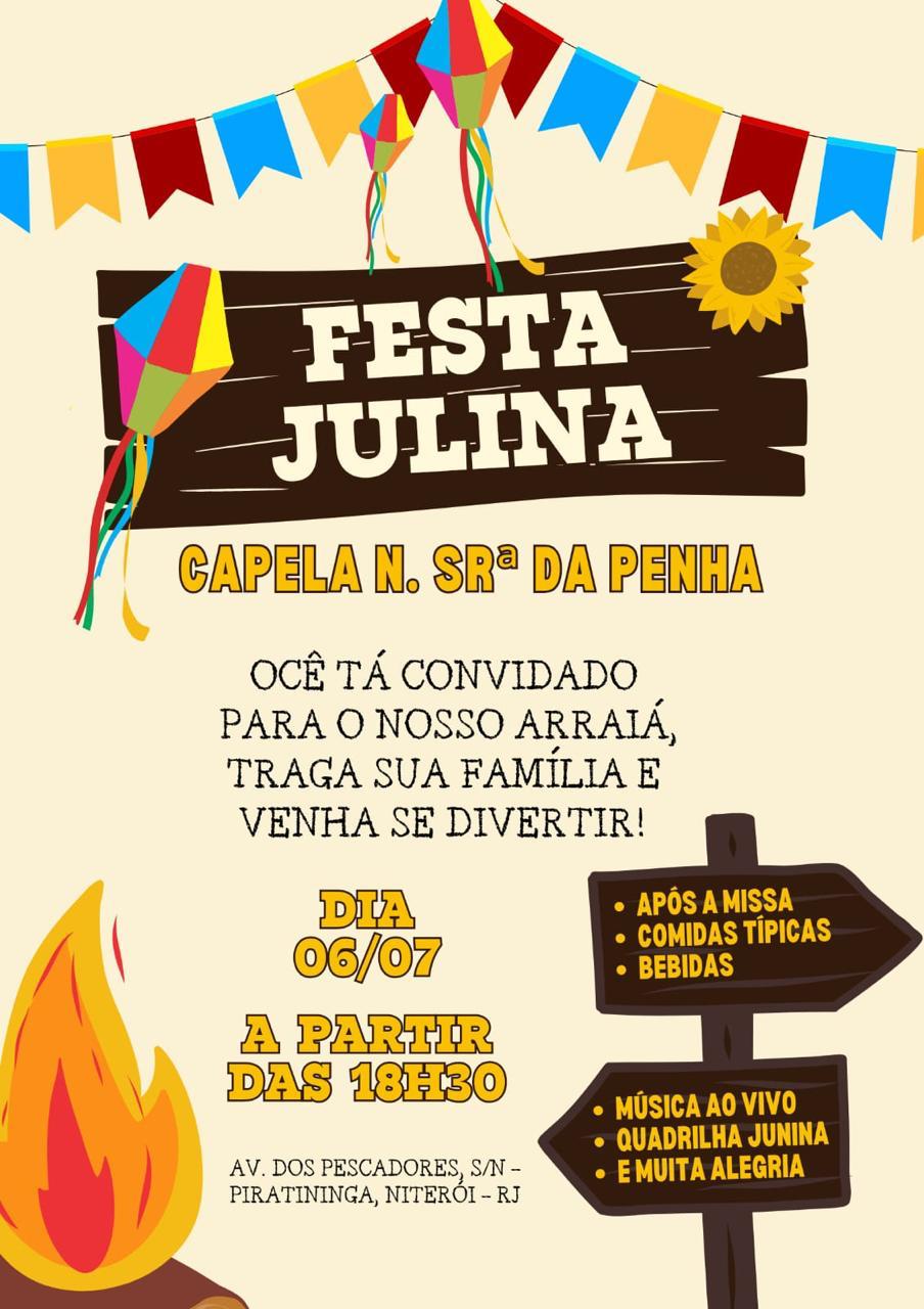 Arraiá na Capela N. S. da Penha 06/07/24 às 18h30.