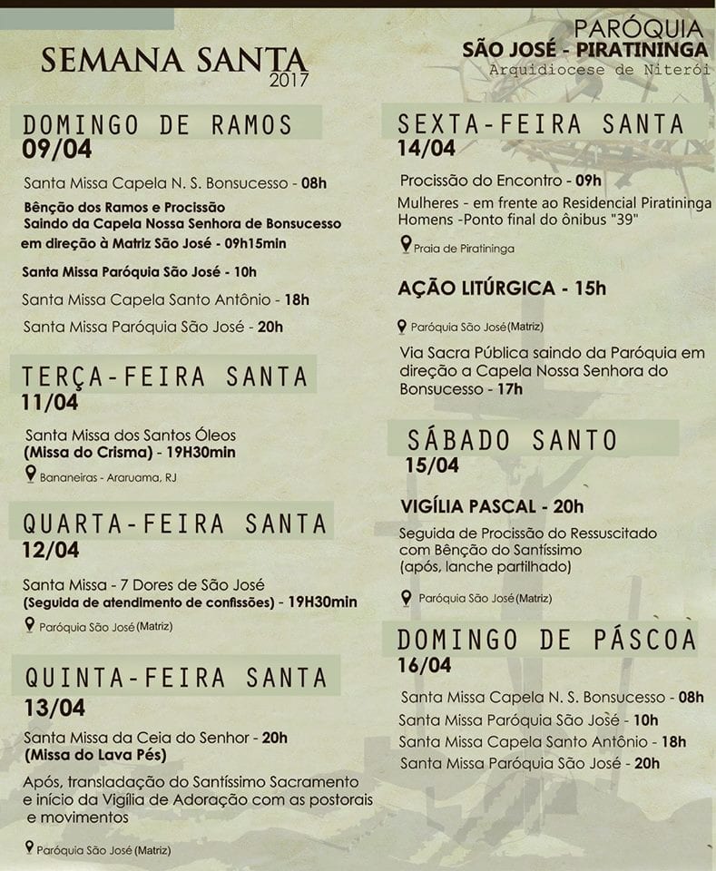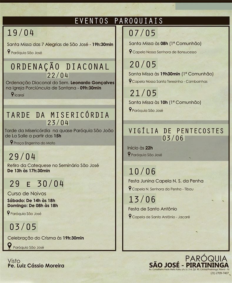 EVENTOS PAROQUIAIS: Abril – Maio 2017