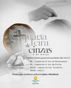 Quarta-feira de Cinzas: tempo de conversão, reflexão e renovação espiritual. Em alguns dias iremos iniciar