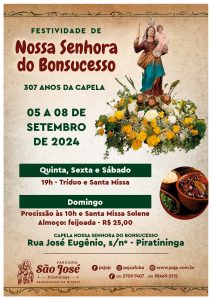Venha comemorar conosco 307 anos da Capela de N. S. de Bonsucesso, de 05 a