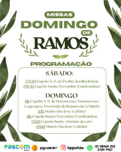 Domingo de Ramos – Paróquia São José no Cafubá Sábado (23/03/2024) 17h30 Capela N. S.