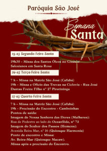 Semana Santa – 25/03 a 31/03/2024 Paróquia São José e Capelas Segunda – Feira Santa
