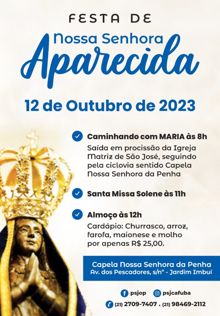 Participem! Vamos caminhar com Maria no dia 12 de outubro, participar da Santa Missa e almoçar na Capela Nossa Senhora da Penha