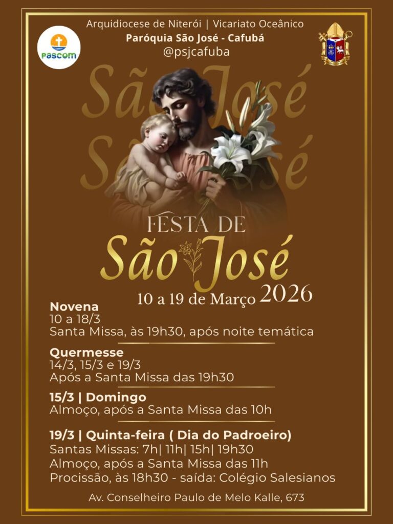 De 10 a 19 de março, nossa Paróquia São José – Cafubá viverá dias de muita fé, devoção e alegria em honra ao nosso padroeiro.