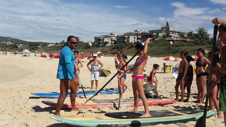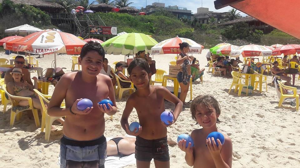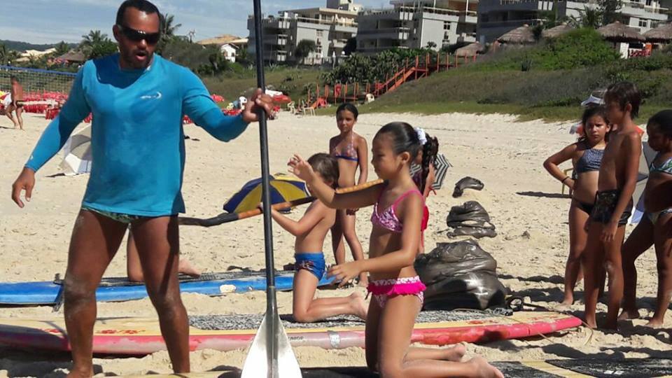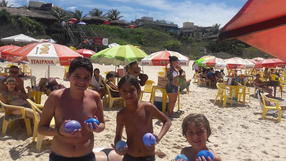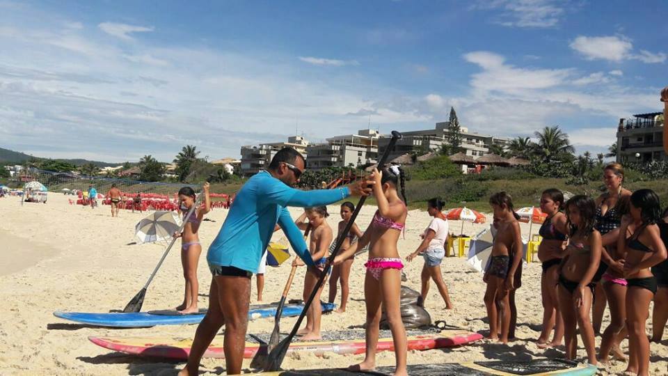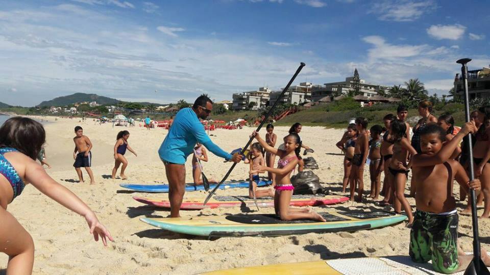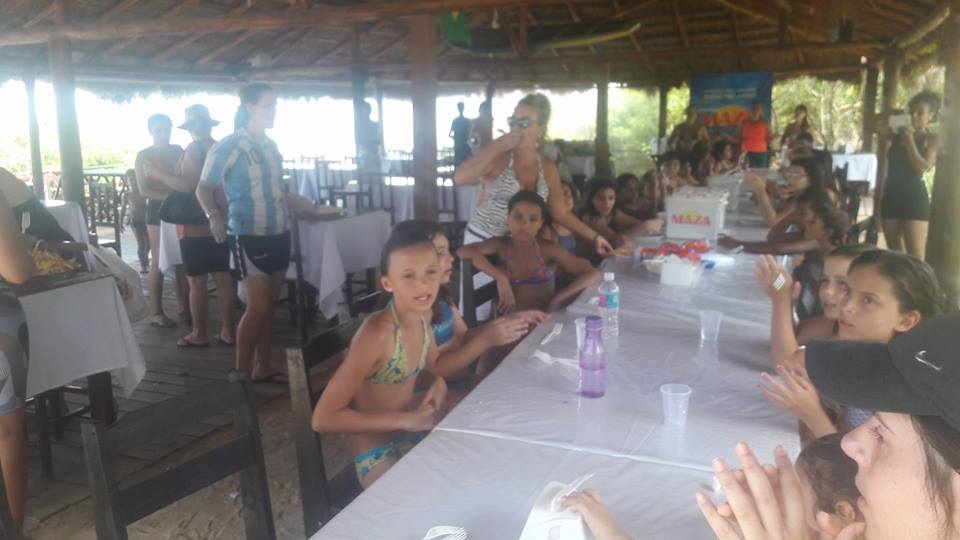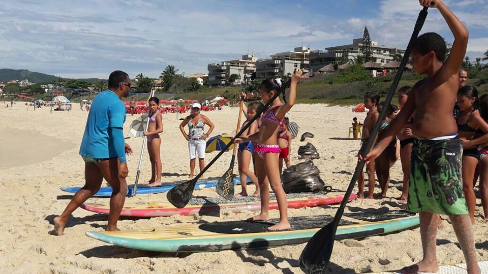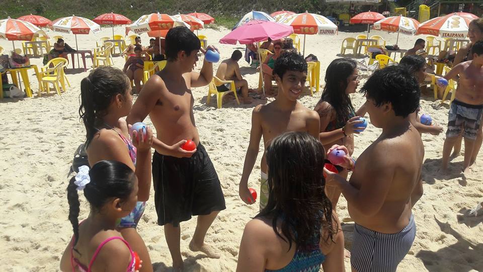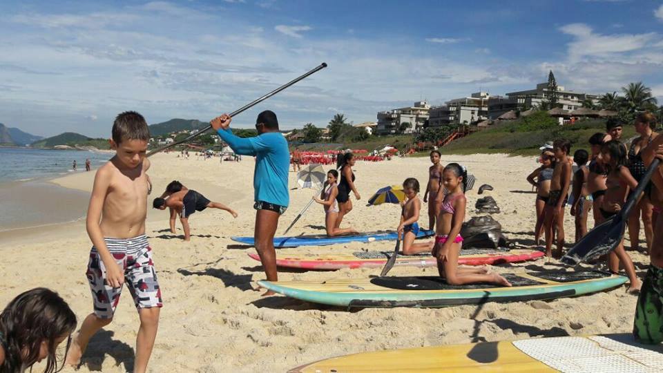 A criançada curtiu muito as aulas de stand up com o tio Pixote, o paintball na areia com a tia Alessandra, o delicioso lanche e o almoço no Quiosque Maza.