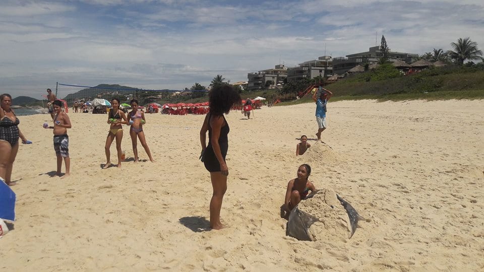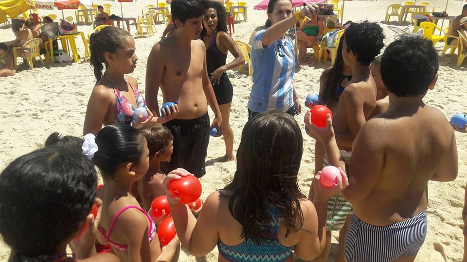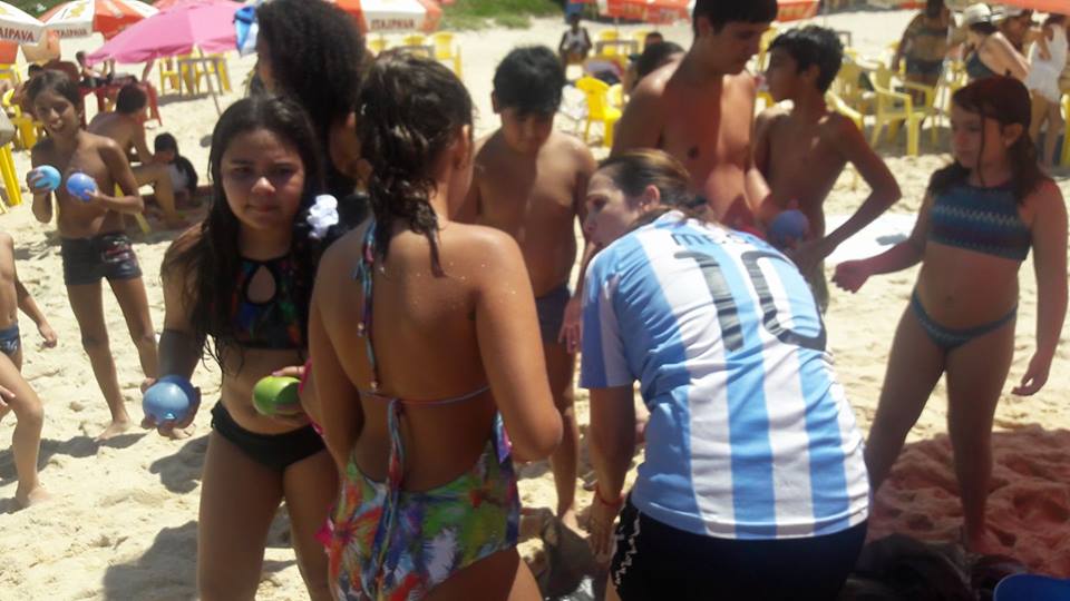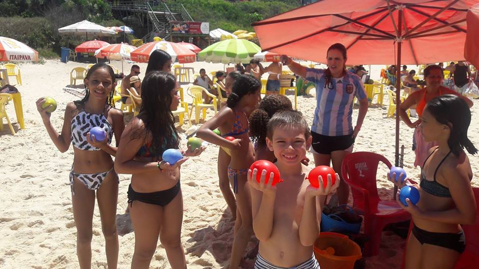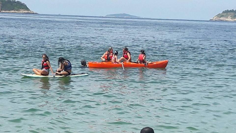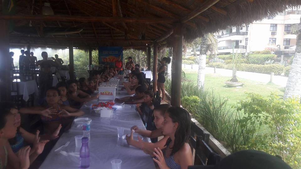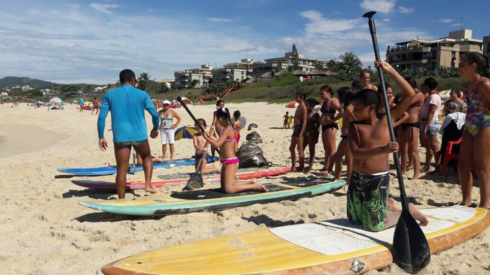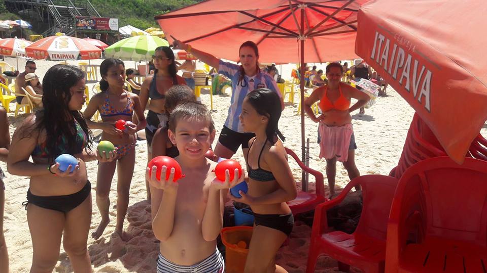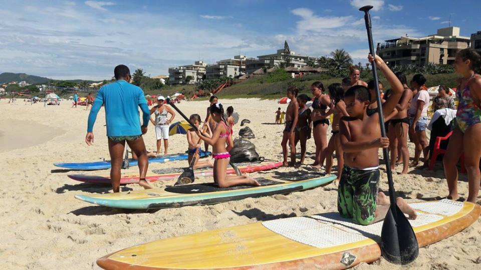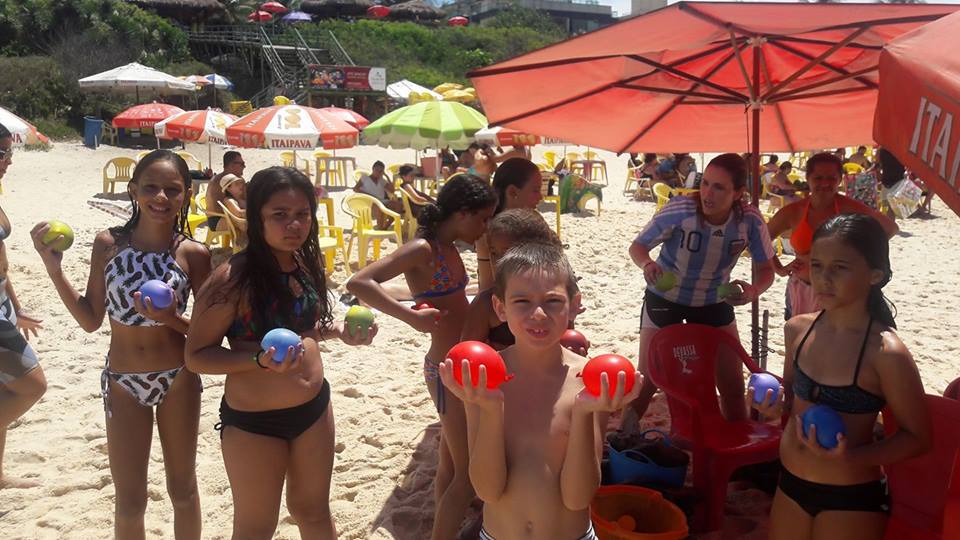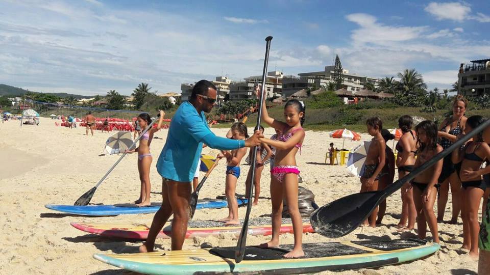 A criançada curtiu muito as aulas de stand up com o tio Pixote, o paintball na areia com a tia Alessandra, o delicioso lanche e o almoço no Quiosque Maza.