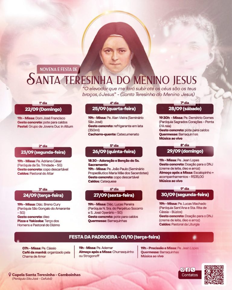 🗓️ De 22/09 a 1/10 na Capela Santa Teresinha – Camboinhas.