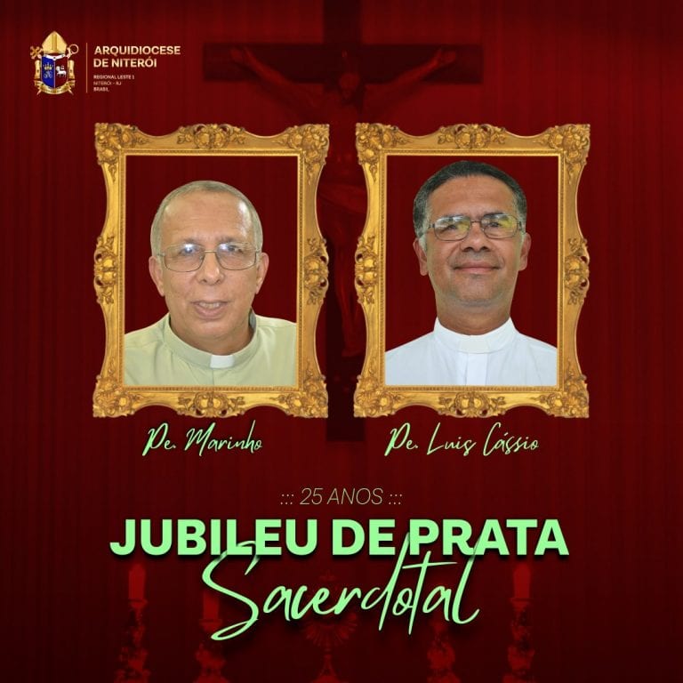 Nesta ocasião, o Setor de Comunicação, em nome da Arquidiocese de Niterói, manifesta suas felicitações por tão significativa data, a do jubileu de prata presbiteral. Parabenizamos os senhores Padres Luiz Cássio Moreira e Marinho Nunes de Souza, pelo intenso e fecundo sacerdócio, uma vocação que se renova a cada dia.