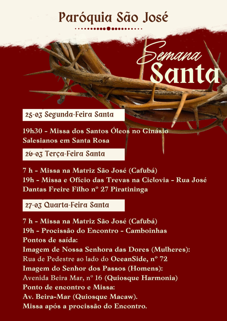 Semana Santa – 25/03 a 31/03/2024 Paróquia São José e Capelas
